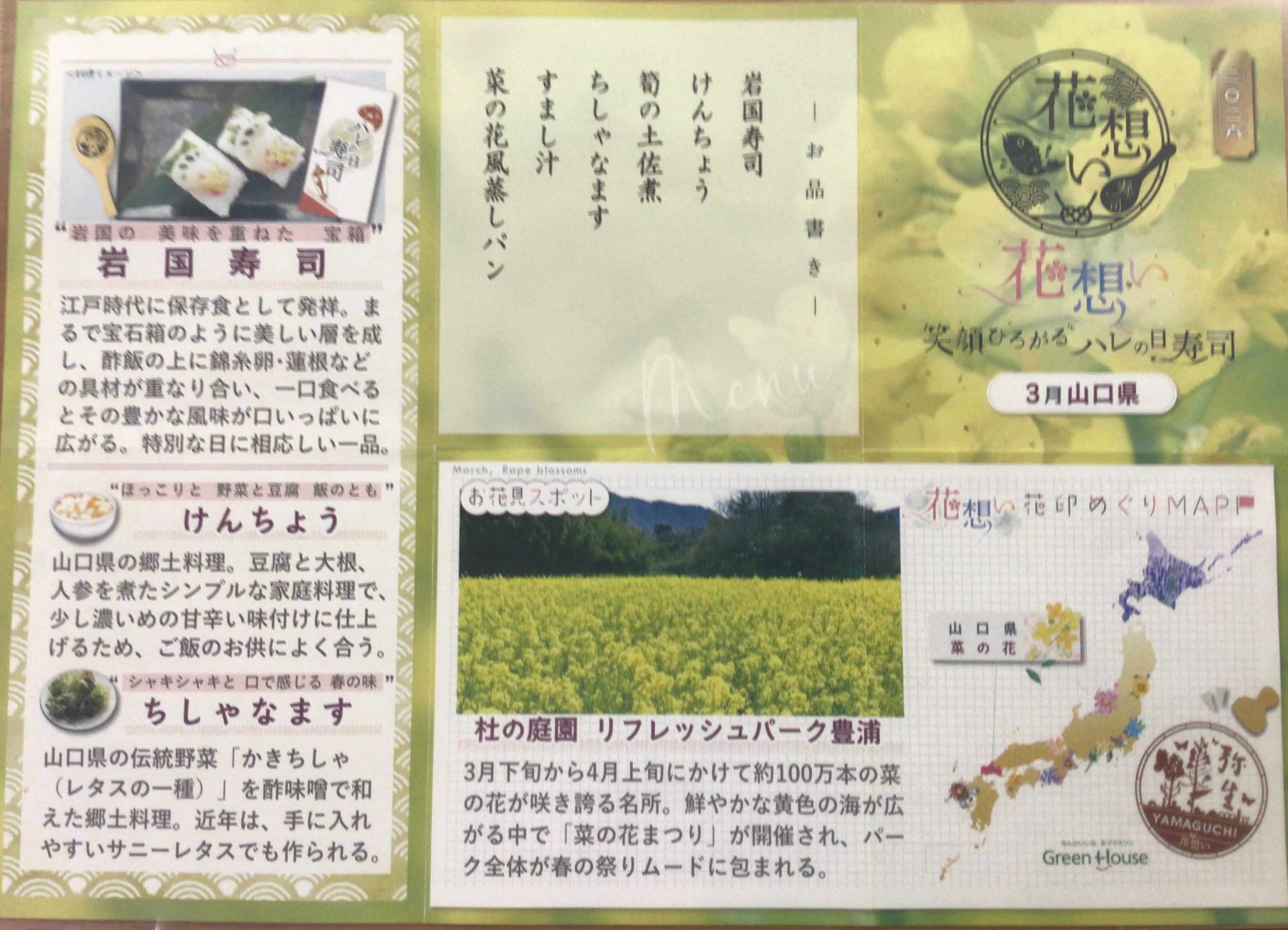 令和7年4月から1年間続いていました、花想い(笑顔ひろがるハレの日寿司)の最終月になります。